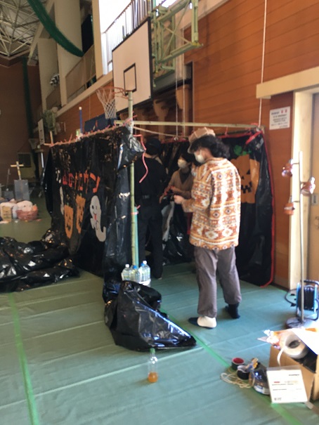 今年の おえかき広場は、ハロウィンお化けストリートを企画 果たして、体育館は暗くなるのか??無謀な企画なのか? |