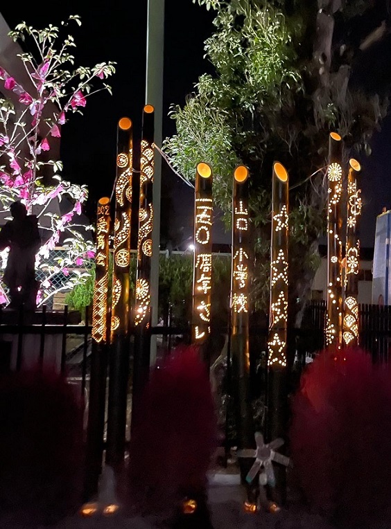 10月27日 愛育会さん手作りの竹灯籠が、 桜の下でキラキラと輝いています。 夜のお散歩をお楽しみください♪