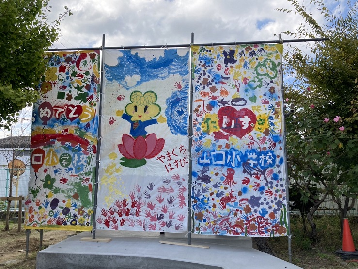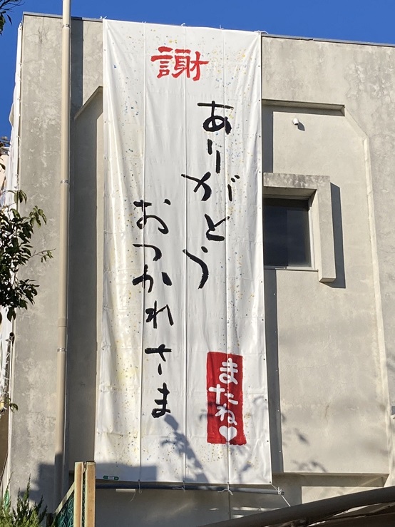 小学校が、すてきな色に生まれ変わり、 正面の足場も外れるそうです(^^♪ たれ幕たちは、前庭の鳥小屋付近にお引越し お近くをお通りの際は、覗いてみてください★