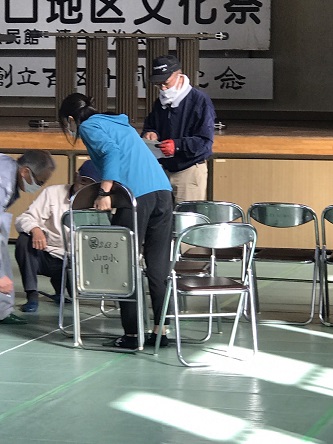 実行委員さんが、設計図を元に椅子の置き場所を書いてくれています。