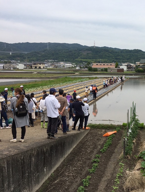お隣では、田植えの真っ最中 芋ほりに比べると地味な((笑))苗植え しかし60人余りの親子が参加してくれました!! 太陽に向けて苗を寝かせて、土のお布団をかけて、 ワラの枕を敷いて、ペットボトルの重しを置いて・・・ こどもたちは一生懸命でした。 美味しいおイモにな〜れ!!! 畑の準備を手伝ってくれた皆さま、ありがとうございます。