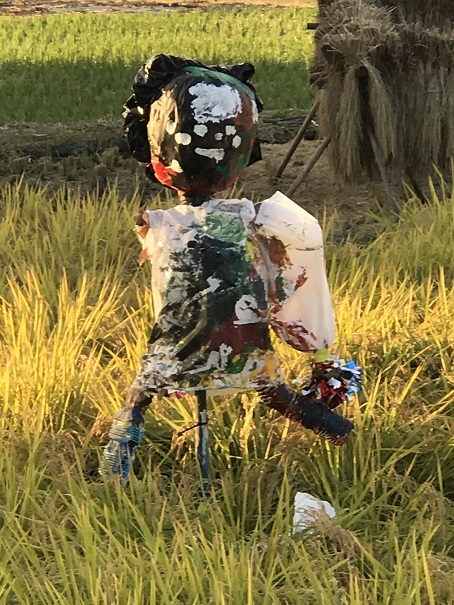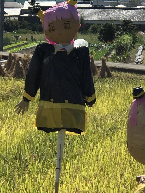 稲刈りが終わり、お仕事を終えたカカシが 文化祭のコンテストに備え、学校にお引越し あ、手前にいるのは みつりちゃん( ´艸`)