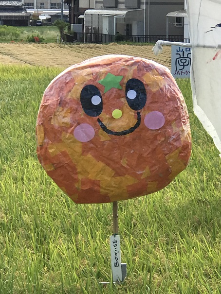 おいしいお米が育ってきました♪ 子どもたちの稲刈りは、10月18日の予定だそうです★ カカシちゃん、お米を守ってね!!