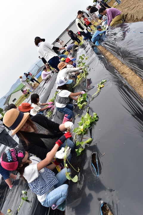 こちらは、芋畑。苗を植えています。 秋になったら、収穫です♪楽しみ★ 令和4年度は、焼き芋大会できるかなぁ? |